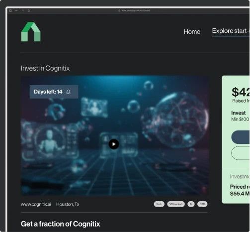 Find the next big thing, before it takes off. Trustseed's curated explore section lets investors scan vetted startups, browse campaign details, and evaluate opportunities based on transparent data. Filter by industry, stage, or funding needs.